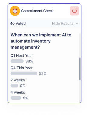 From quarterly updates to company-wide Q&As, Smart Agendas help you make the most of everyone’s time. Structure your message, surface the right topics, and get instant feedback—all while keeping attention high and participation up.